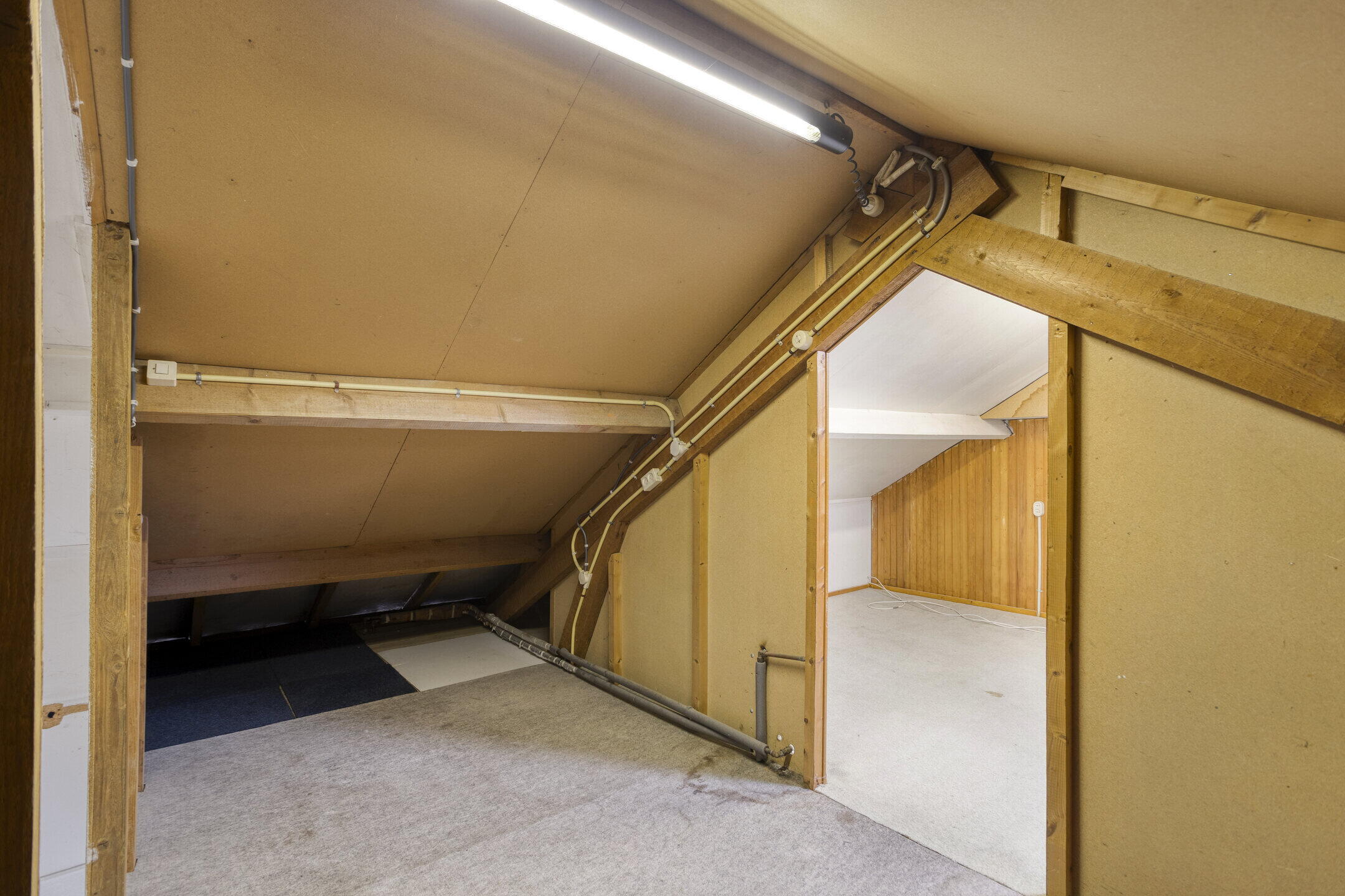 Via een vaste trap bereik je de zolder, waar zich een zolderkamer bevindt. Deze verdieping is eventueel met een nokverhoging ideaal als extra slaapkamer, werkruimte of hobbykamer.