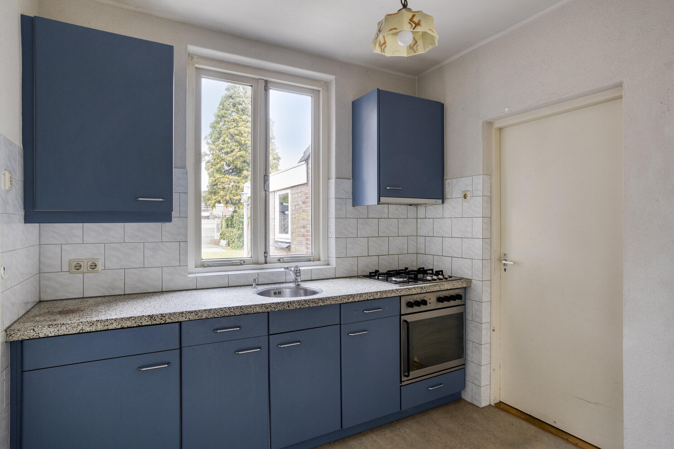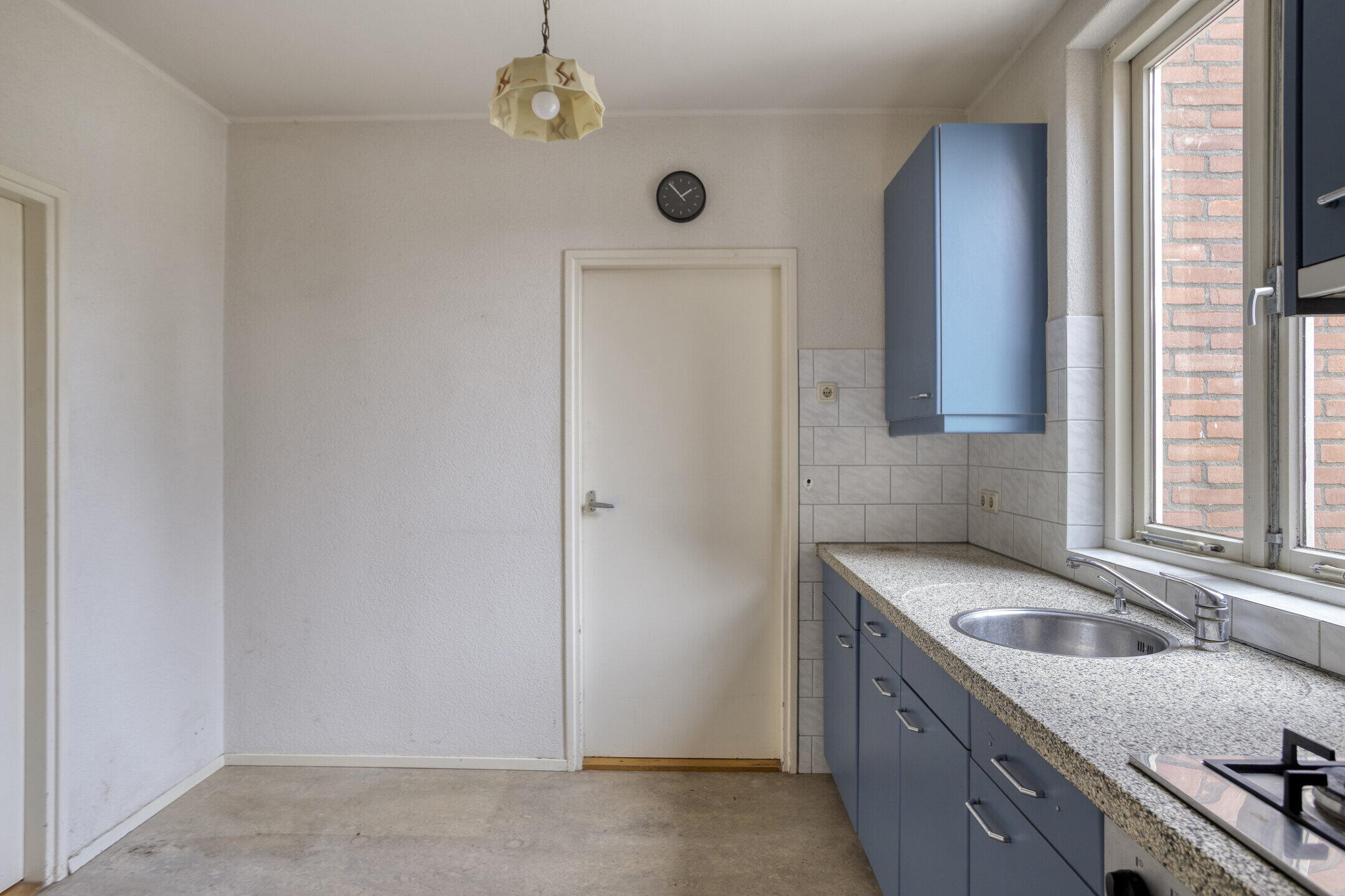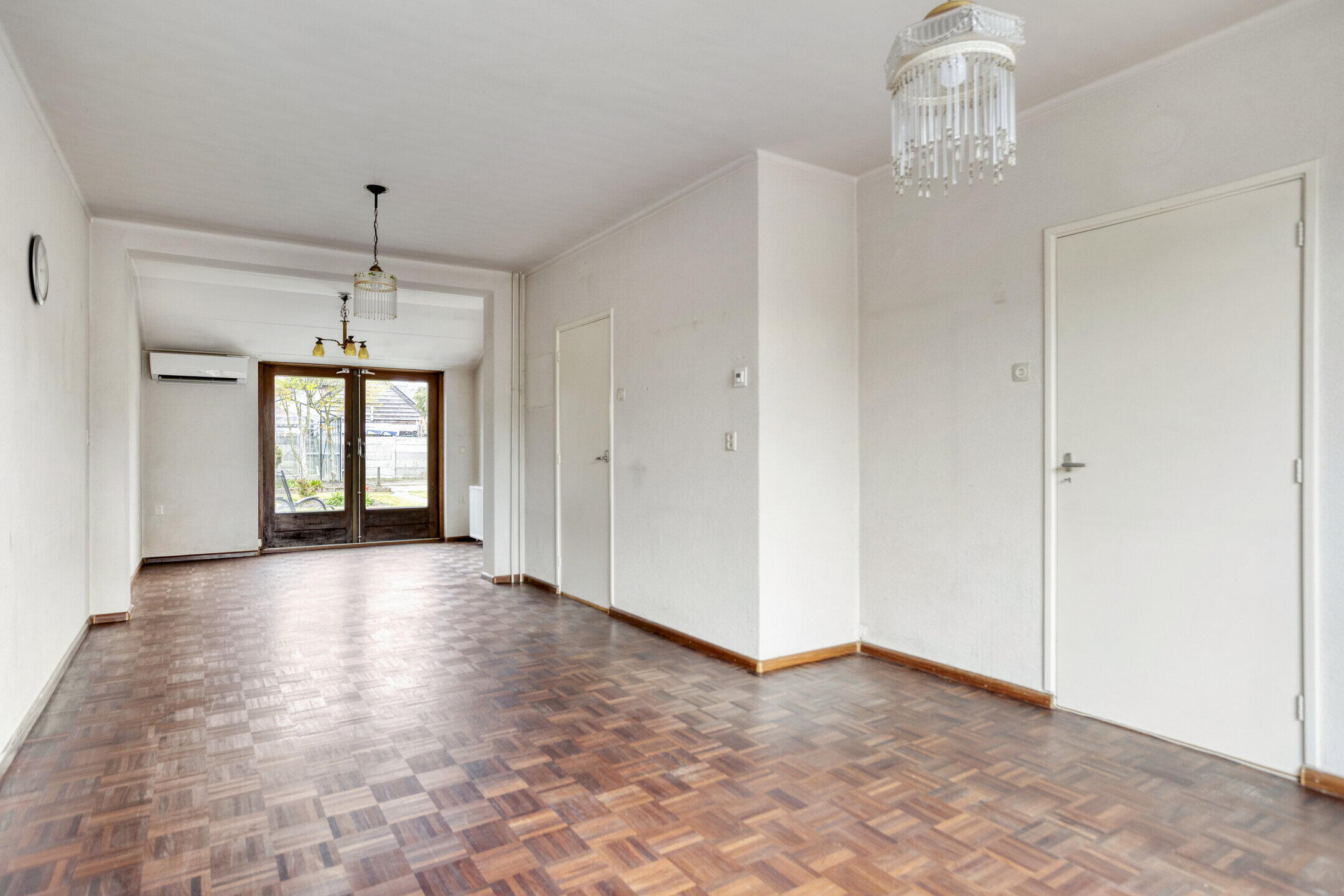 Via de hal met toilet en trapopgang bereik je de uitgebouwde woonkamer (2000). Dankzij de uitbouw is er een fijne leefruimte ontstaan met zicht op de diepe achtertuin. De dichte keuken bevindt zich aan de achterzijde en biedt toegang tot zowel de hal als de binnendoor bereikbare garage – ideaal om je woonruimte uit te breiden of voor opslag, hobbyruimte of het stallen van een auto/motor.