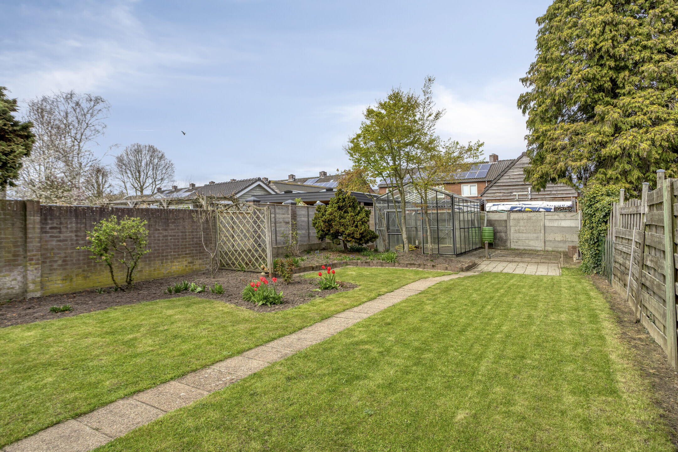 De woning beschikt over een bijna 25 meter diepe achtertuin, wat uitzonderlijk is en volop mogelijkheden biedt voor tuinliefhebbers, uitbouwen of bijvoorbeeld een veranda. De ruime oprit biedt plaats aan meerdere auto’s.